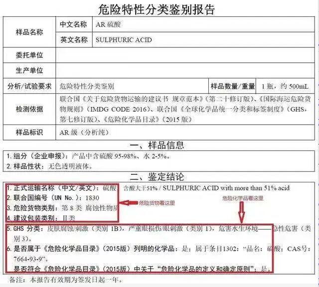但上述條目繁雜,有時難以把握,可以向有資質(zhì)的機(jī)構(gòu)申請危險特性鑒別報告,同時鑒別危險貨物種類和危險化學(xué)品的危險特性。