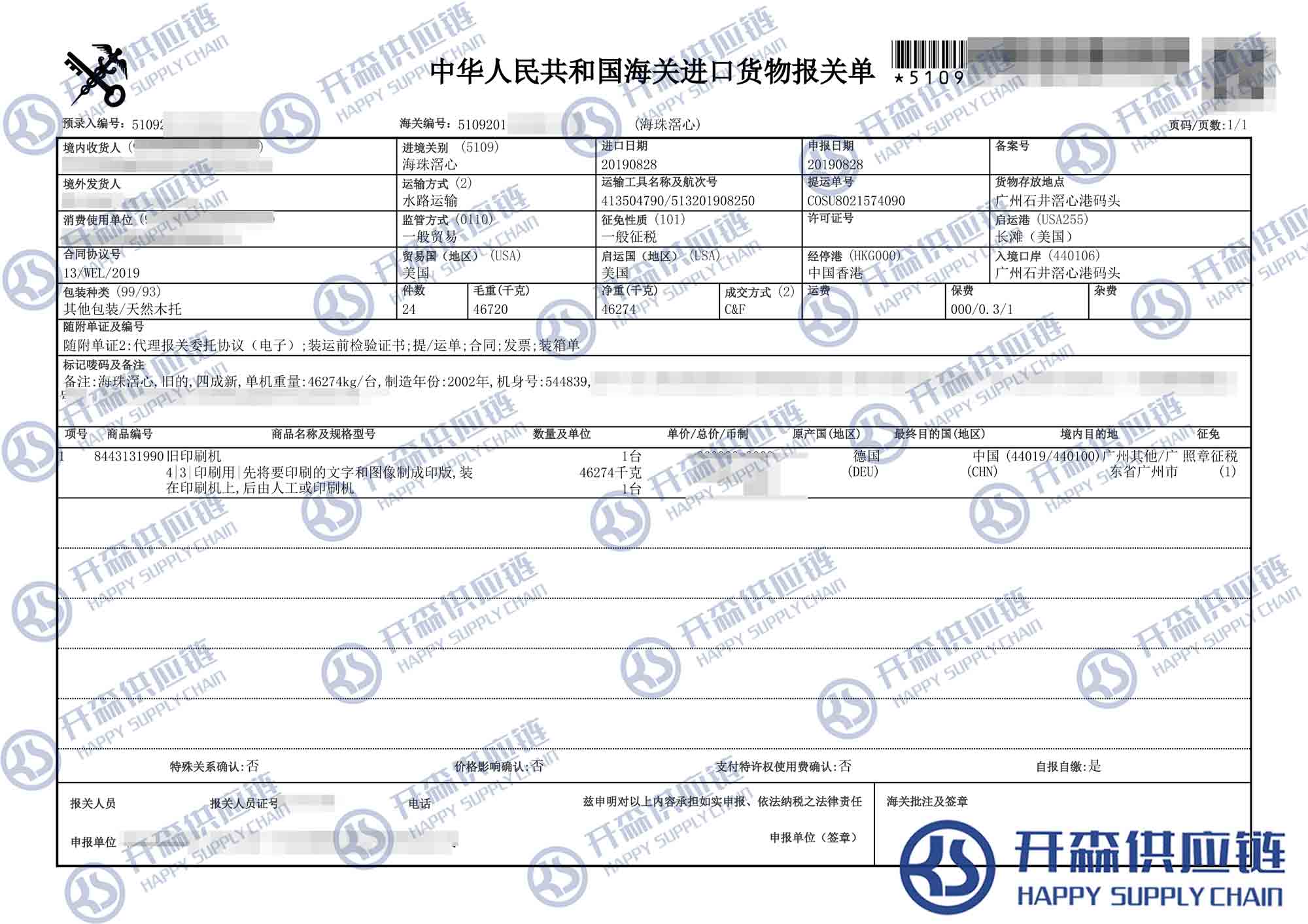開森進(jìn)口供應(yīng)鏈擁有豐富二手舊機(jī)械設(shè)備進(jìn)口操作經(jīng)驗(yàn)及案例,經(jīng)常在廣東,上海,香港等主要港口操作機(jī)械進(jìn)口報關(guān)項(xiàng)目,報關(guān)代理為主要業(yè)務(wù),專業(yè)從事機(jī)械進(jìn)口海運(yùn)、報檢、報關(guān)、倉儲、物流配送等一系列進(jìn)口清關(guān)業(yè)務(wù)。