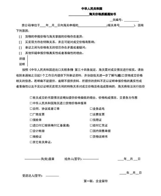 自收到《海關(guān)價(jià)格質(zhì)疑通知書》之日起5個(gè)工作日內(nèi),以書面形式提供相關(guān)資料(如提供價(jià)格偏低的理由、價(jià)格構(gòu)成情況、交易各方作用的情況說明,《中華人民共和國(guó)海關(guān)進(jìn)出口貨物價(jià)格補(bǔ)充申報(bào)單》,合同、協(xié)議或者訂單,業(yè)務(wù)函電,廠商發(fā)票,運(yùn)費(fèi)發(fā)票,保險(xiǎn)單,結(jié)付匯憑證,貨物說明書等),以證明其申報(bào)價(jià)格真實(shí)、準(zhǔn)確或買賣雙方之間的特殊關(guān)系未影響成交價(jià)格。
