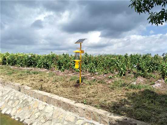 3、 頻振式殺蟲燈集中連片效果好。頻振式殺蟲燈集中、連片、連續使用會達到更佳的防治效果。