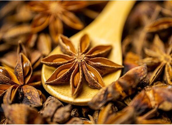 八角茴香來(lái)自中國(guó)西南部和越南東北部的一種常綠喬木。因?yàn)槊帧⑽兜篮托螤詈蛙钋巯嗨疲瑑烧呓?jīng)常被弄混。八角茴香常被用作茴芹的平價(jià)替代品。八角茴香在中國(guó)、印度、印度尼西亞和馬來(lái)西亞美食中被廣泛使用。在我們中國(guó),八角茴香常被用來(lái)燉菜(主要是肉),還有一些鹵味。八角茴香有助于消化,也可以治療風(fēng)濕和腸胃脹氣等。