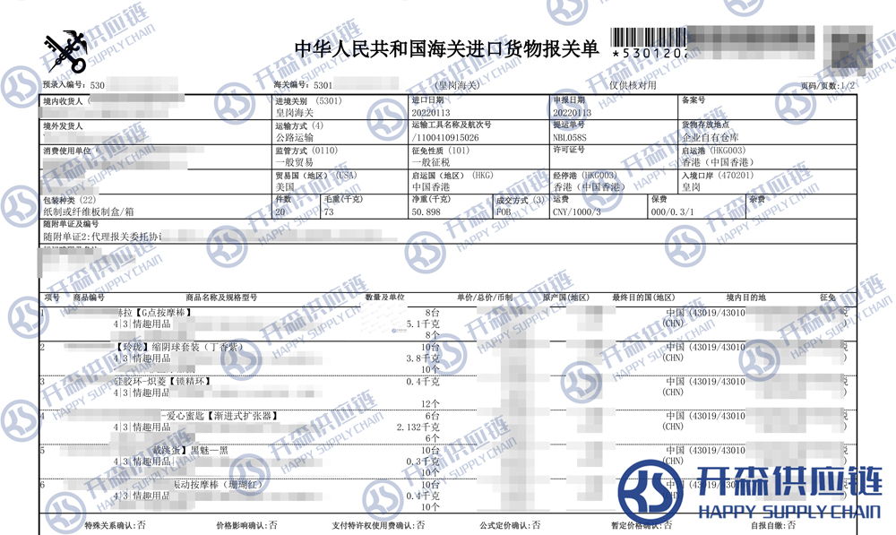 開森進口供應(yīng)鏈擁有豐富的成人用品進口報關(guān)操作經(jīng)驗及案例,十余年操作經(jīng)驗及案例可供參考,可按需定制進口方案,幫助客戶解決進口難題,快速進口清關(guān)到港到貨。