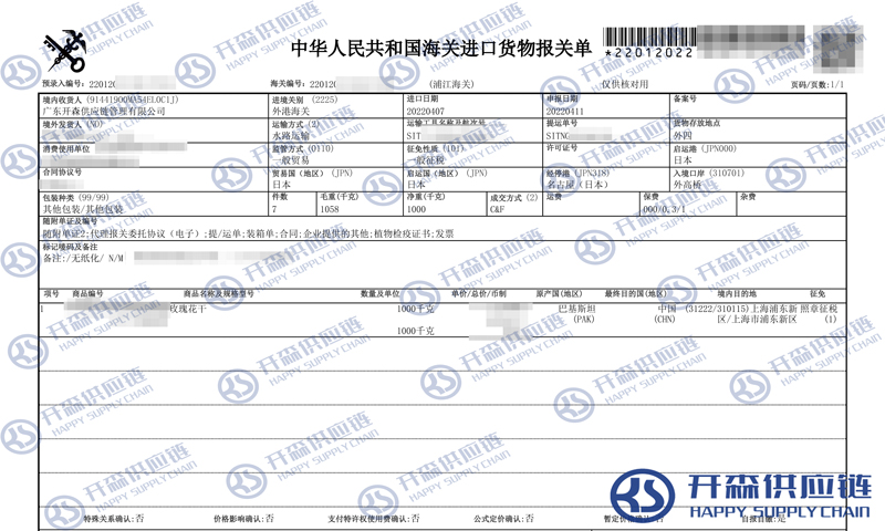 開森進口供應(yīng)鏈擁有豐富的日本玫瑰花干進口報關(guān)操作經(jīng)驗及案例,十余年操作經(jīng)驗及案例可供參考,可按需定制玫瑰花干進口方案,幫助客戶解決進口難題,快速進口清關(guān)到港到貨。