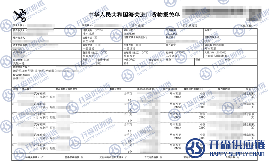 一、馬來(lái)西亞汽車(chē)玻璃進(jìn)口報(bào)關(guān)代理案例詳情