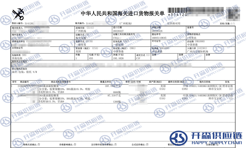一、美國(guó)DHA藻油進(jìn)口報(bào)關(guān)代理案例詳情