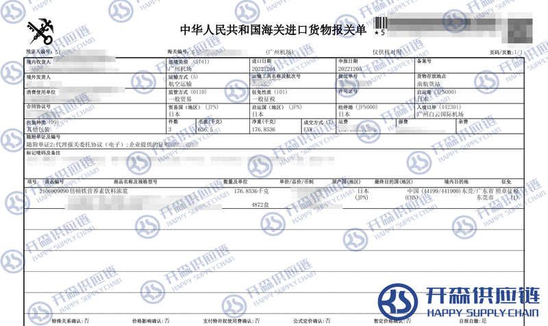 一、日本營養(yǎng)素飲料濃漿進(jìn)口報關(guān)代理案例詳情
