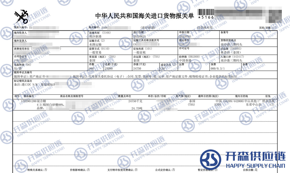 廣州南沙港泰國混合糖進(jìn)口報(bào)關(guān)代理服務(wù)【經(jīng)典案例】