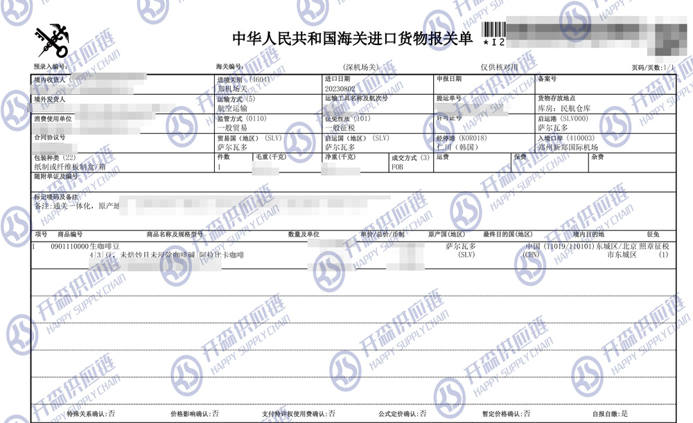 一、鄭州機(jī)場(chǎng)生咖啡豆進(jìn)口報(bào)關(guān)代理案例詳情
