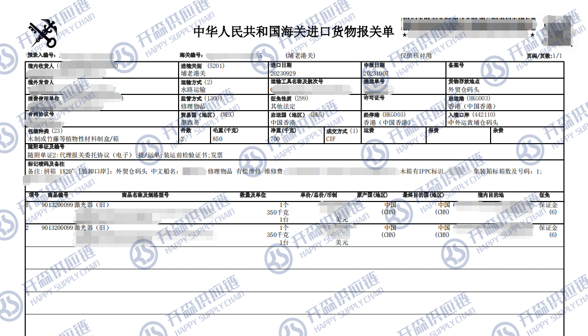 【導讀】您正在閱讀的是關于廣州港舊激光器退運返修報關代理服務【清關案例】的內容,本文由開森退運進口報關代理小編整理編寫;