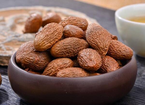 胖大海別名:大海、大海子、大洞果、大發(fā),梧桐科植物胖大海的干燥成熟種子。呈紡錘形或橢圓形,長2~3cm,直徑1~1.5cm。先端鈍圓,基部略尖而歪,具淺色的圓形種臍,表面棕色或暗棕色,微有光澤,具不規(guī)則的干縮皺紋。外層果皮極薄,質(zhì)脆,易脫落。中層果皮較厚,黑褐色,質(zhì)松易碎,遇水膨脹成海綿狀。斷面可見散在的樹脂狀小點。內(nèi)層果皮可與中層果皮剝離,稍革質(zhì),內(nèi)有2片肥厚胚乳,廣卵形;子葉2枚,菲薄,緊貼于胚乳內(nèi)側(cè),與胚乳等大。氣微,味淡,嚼之有黏性。