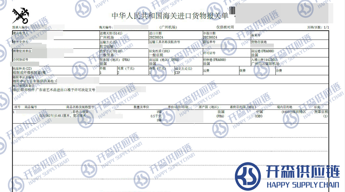 一、法國彩色石版畫進(jìn)口報關(guān)代理案例詳情